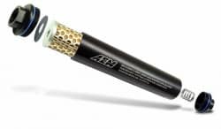 Filtre à carburant universel AEMComme son nom l’indique, il est là pour retenir les impuretés pouvant être contenues dans l’essence, comme les résidus ou la rouille. Ce n’est pas fréquent, mais cela peut arriver. Fond de cuve chez le pompiste, essence non stabilisée et croupie après être restée trop longtemps dans le réservoir, ou pire, rouille, il vaut mieux pour le moteur que rien ne passe dans le circuit d’alimentation de la moto. Pas même l’eau que l’on peut retrouver sous forme de condensation ou mélangée avec l’essence.