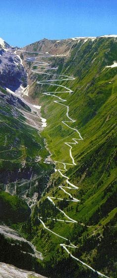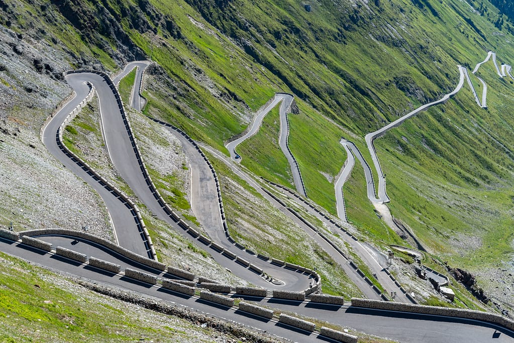 Les 48 courbes du passage de Stelvio, entre Valtellina et Merano qui sont sûrement les plus connues pour les voyageurs d’Europe. Situées à 2.757 mètres d’altitude, les courbes à 180º unissent l’Italie avec la Suisse dans le cœur des Alpes. Et le meilleur de tout c’est que si nous les connaissons un peu, on peut continuer la recherche de courbes pour autres sites alpins sans la peur d’être déçu, autant au niveau du paysage que pour les courbes. C’est pourquoi c’est une destination aussi populaire.