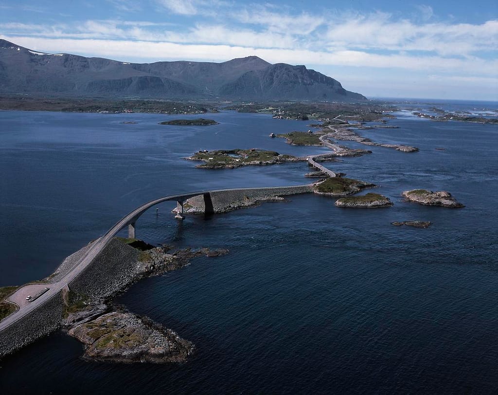 La route de l’Atlantique unie deux îles de la côte spectaculaire Norvège, Molde et Kristiansund. Les huit ponts qui s’unissent créent des vues fantastiques sur les fjords et magnifiques montagnes de la côte. La vivacité du paysage se complémentent avec la présence de phoques et baleines comme spectateurs de luxe. Il s’agit seulement de huit kilomètres, mais même le journal The Guardian la souligne comme l’un des meilleurs voyages qui peuvent être réalisés.