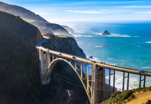 Unissant la zone Nord de Californie et Los Angeles, se trouve cette fameuse balade américaine, route obligée pour tout visiteur des États-Unis. La California State Route 1 dispose de pratiquement 140 kilomètres au bord de la côte du Pacifique qui s’étire une Carmel-by-the-sea avec San Simeon. La route serpente les falaises de la mer, ainsi que durant la majeure partie du temps la vue est spectaculaire avec de nombreuses criques magnifiques qu’ont créé l’océan.