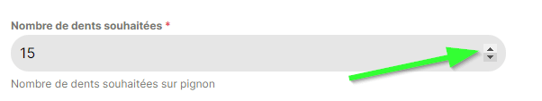 Si les chiffres s’actualisent mal alors il suffit de monter via la flèche en bout de case dans le formulaire le nombre de dents 1 fois et ensuite de redescendre.