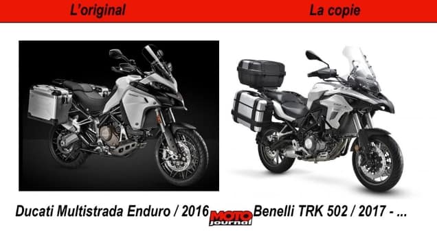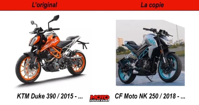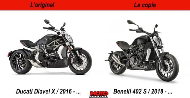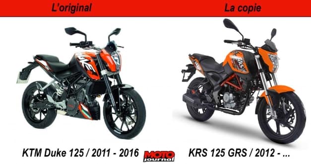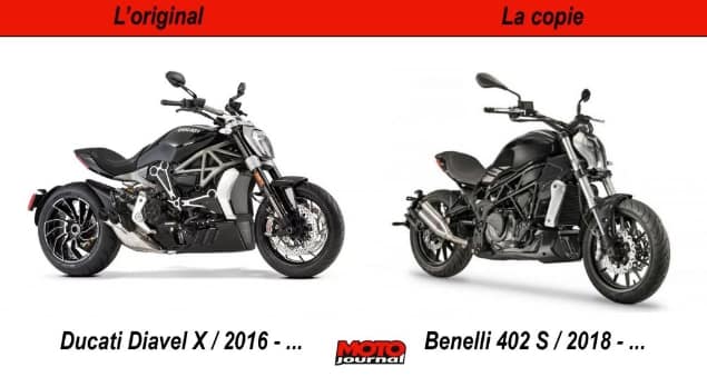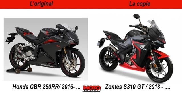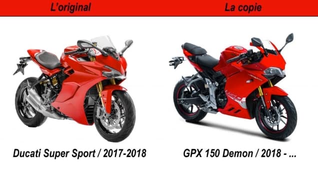 Je vais terminer cet article en revenant au monde de la moto à proprement parlé et vous montrer quelques exemples connus de copies. Ces exemples datent de 2017/2018 mais montrent bien que certains copieurs vont très loin dans la ressemblance avec l’original et cela n’est pas près de s’arrêter …