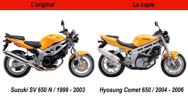 Suite au commentaire judicieux de Bruno , je spécifie aussi que les images des motos avec “L’original” et la “Copie” à coté ne concerne que le coté esthétique. Cela allait sans dire pour moi mais c’est vrai que c’est bien mieux en le disant 😉.