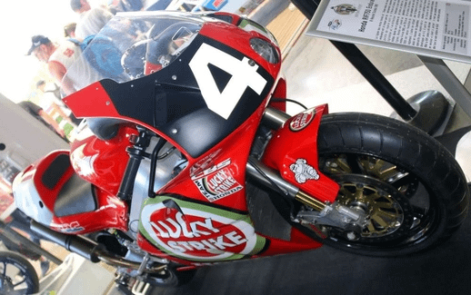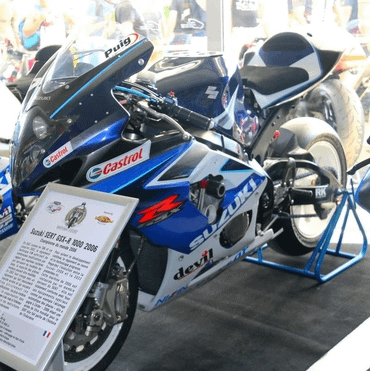 Suzuki 1000 GSXR Championne de Monde en 2006 avec le SERT. Caractéristiques: 4 cylindres en ligne 4 temps 1000 cm3 185 cv 165 kg 280 km/h.