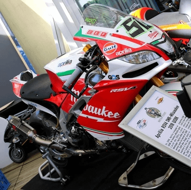 Aprilia RSV4 2018 Superbike Team SMR-Milwaukee. Caractéristiques: V4 4 temps 1000 cm3 235 cv 165 kg 320 km/h.
