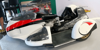 Side-car LCR Krauser 1983 ex-Alain Michel & Claude Monchaud. Caractéristiques: 4 cylindres en ligne 2 temps 500 cm3 160 cv 190 kg 280 km/h.