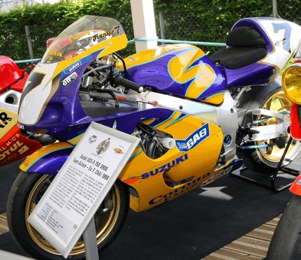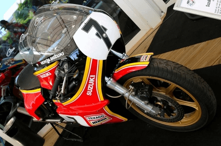 Suzuki 700 RGB XR 23 B 1979 ex-Barry Sheene. Caractéristiques: 4 cylindres en carré 2 temps 652 cm3 138 cv 140 kg 310 km/h.