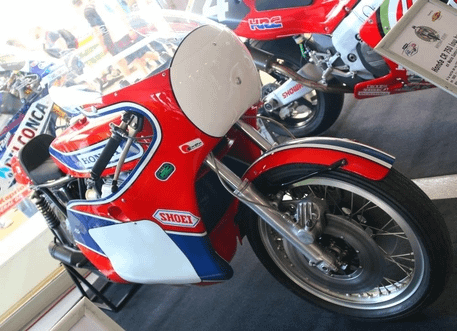Honda CR 750 cm3 1973 ex-Morio Sumiya (pilote de développement Honda). Caractéristiques: 4 cylindres en ligne 4 temps 750 cm3 92 cv 240 km/h.