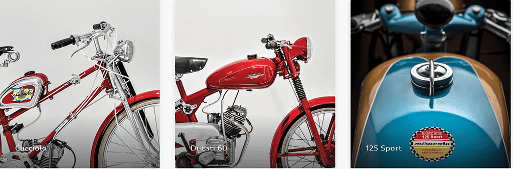 Ducati commence son aventure non pas avec des motos, mais en tant que fabricant de composants électroniques sous le nom de “Società Radio Brevetti Ducati”. Ce n’est qu’après la Seconde Guerre mondiale que l’entreprise se diversifie dans la production de motos légères. La première moto emblématique de la marque, la Cucciolo, voit le jour en 1946. Ce modèle, doté d’un petit moteur de 48 cm³, a marqué les prémices de l’entrée de Ducati dans l’univers des deux-roues.