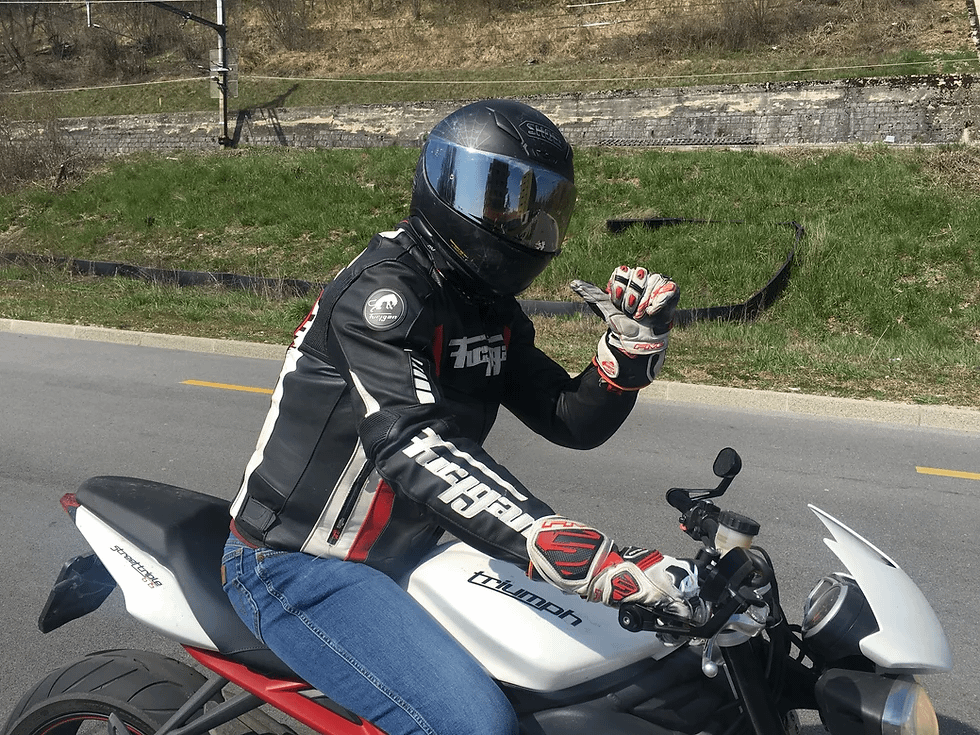 Outre le signe “V”, certains motards optent pour un pouce levé pour signifier la satisfaction ou la reconnaissance. Le pouce levé peut aussi servir à vérifier que tout va bien, en particulier lorsqu’un motard vient d’avoir un problème technique ou un accident léger. Cette variante est souvent utilisée sur les routes secondaires et dans des contextes plus informels.
